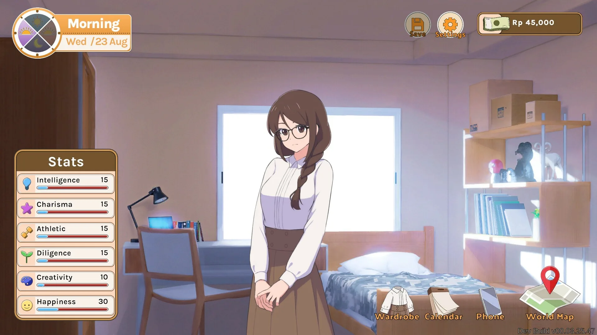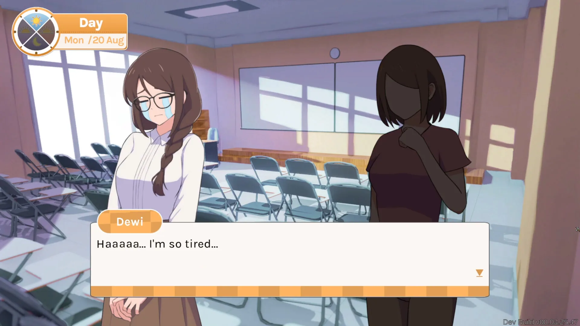 - Aktivitas Terjadwal: Waktu dan tindakan memengaruhi progres cerita.