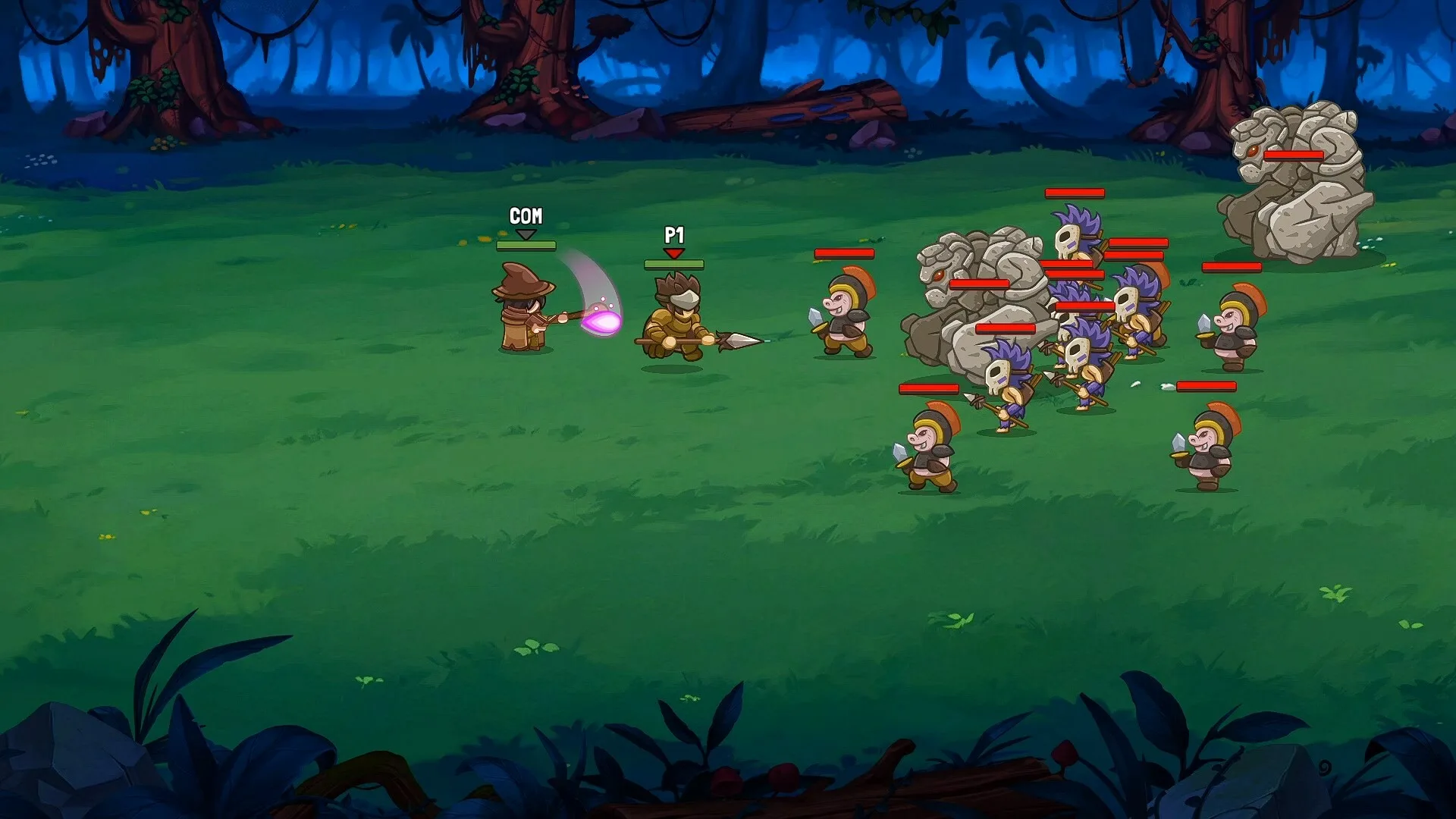 Pemain dapat bermain bersama teman dalam mode local co-op hingga empat pemain. - Pertarungan cepat dan strategis