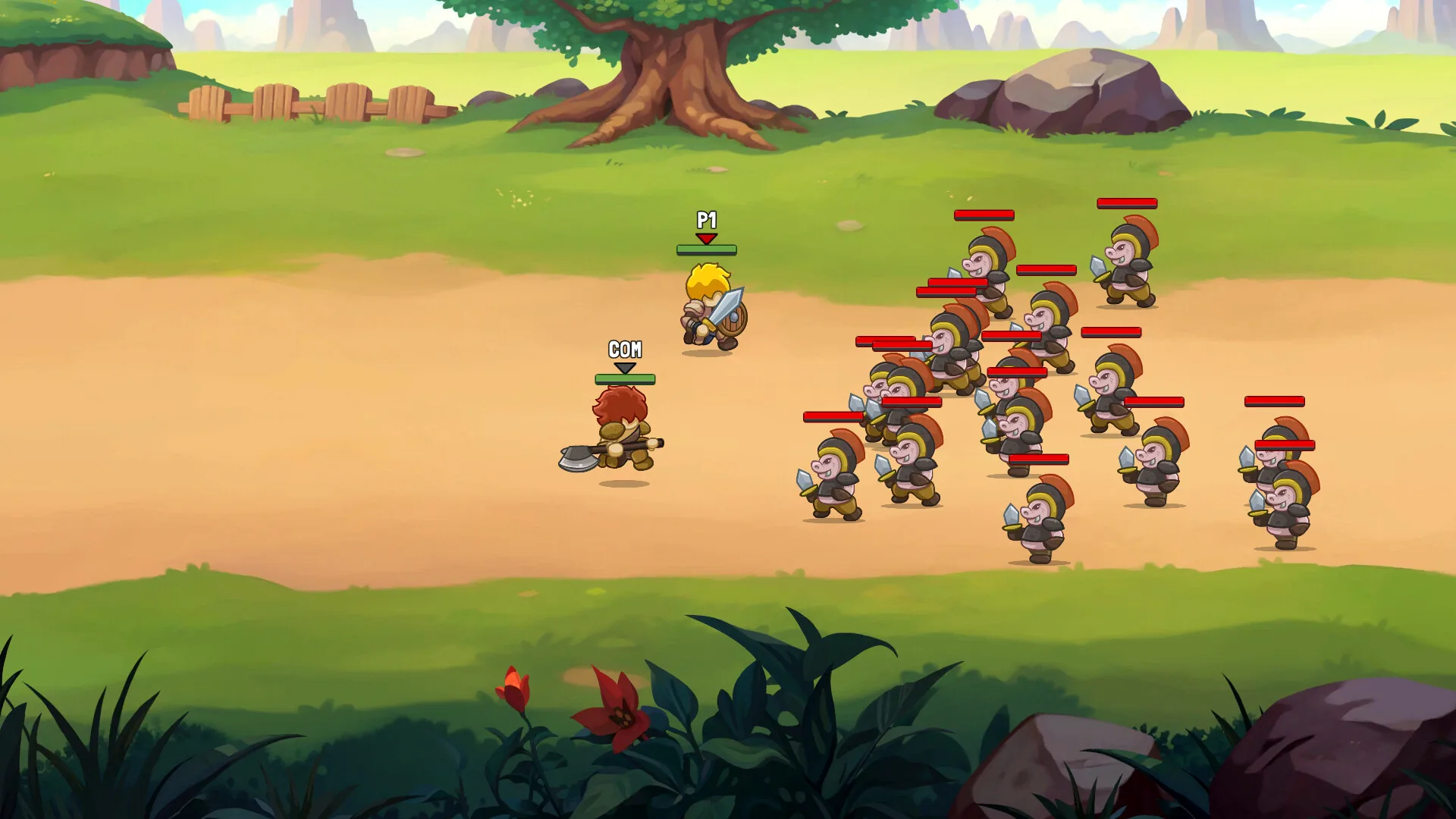 Game ini menggunakan gaya grafis 2D yang penuh warna dan bergaya kartun. Setiap karakter dan musuh dirancang dengan detail yang hidup, menciptakan suasana yang menarik dan imersif bagi pemain.
